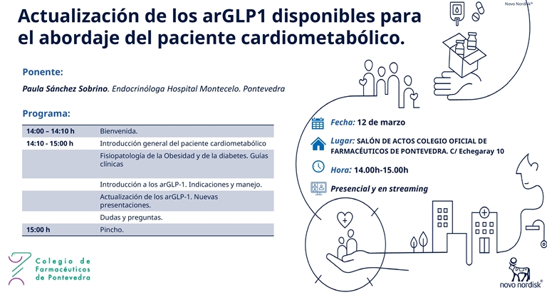 Seminario online, durante el cual se darán unas nociones de los inyectables en diabetes (insulinas y análogos de GLP1), sobre todo consejos de manejo de dispositivos, conservación y dudas que les suelen surgir a los pacientes.